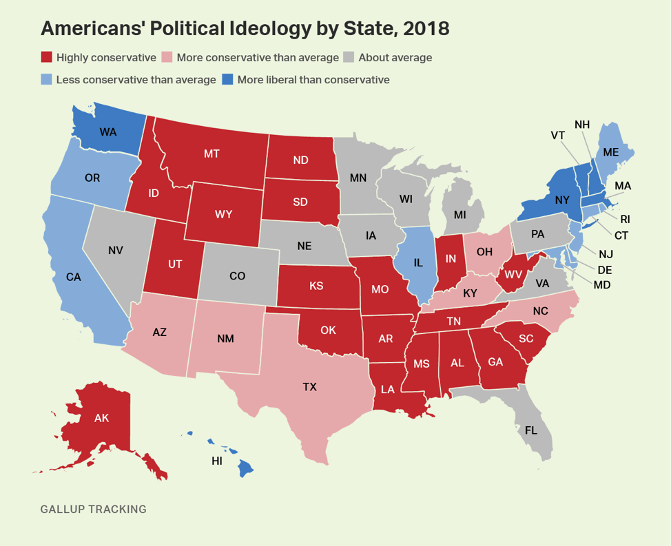 Compare the above figure with the figure below, which shows each state’s political ideology: