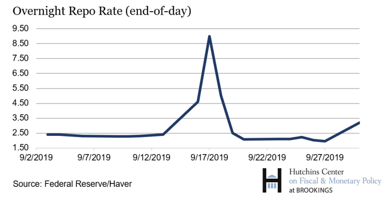 Since Sept. 2019, financial markets reporting has covered turmoil in the repo market. Not to be confused with cars being repossessed for nonpayment, the repo market refers to exchanges of reserves that fund day-to-day financial operations. Short for repurchase agreement, a “repo” is a short-term, collateralized loan that banks and other financial entities frequently utilize to settle daily transactions and ensure compliance with post-financial-crisis reserve requirements. In mid-Sept. 2019, overnight repo rates surged from around two percent to nearly ten percent due to a shortage of reserves available for repo borrowing. In response, the Federal Reserve implemented emergency repo operations for the first time since the Great Recession that have continued to date, sparking concerns over broader financial implications.